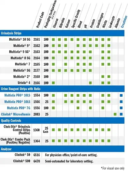 - Consistent quality in manufacturing and packaging of Multistix urinalysis strips ensures high quality, reproducible results - each strip, every test.