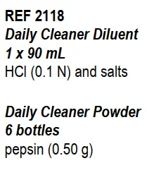 The “Fluid Path” must be cleaned at the end of every working day to remove protein deposits. DAILY CLEANER? or DAILY RINSE? is the